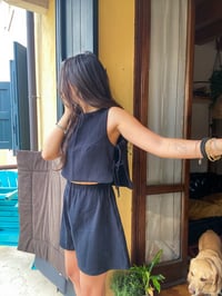 - top in morbido cotone organico con laccetti laterali decorativi
